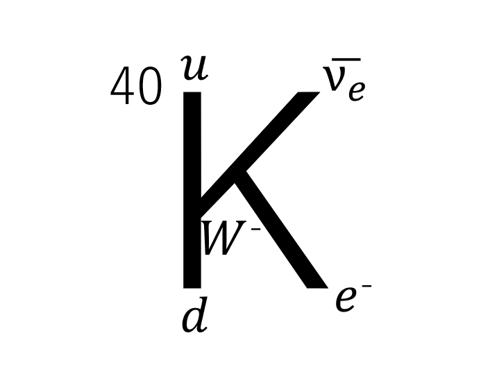 K-40の崩壊では、Q(EC)=1.5MeV、Q(β)=1.3MeV、放出ガンマ線=1.46MeVと「どこに1.8MeV?」と思っていたら、このIBDの閾値だったようです。